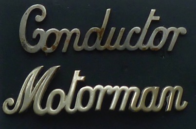 Standard, 'off-the-shelf', script-lettering grade badges of the type used by the SCT from around the time of the Great War through to closure — nickel. Author's Collection.