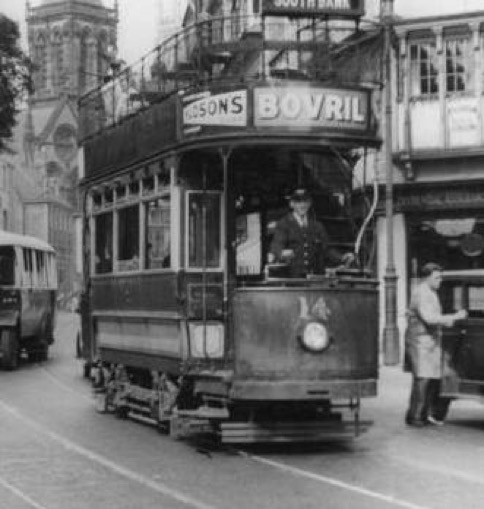 A motorwoman at the controls of Tramcar No 27 at what is probably the Hull Rd terminus. She appears to be wearing an informal bonnet along with a tailored, single-breasted overcoat, possibly self-purchased as all other photos, of which there are many, show ladies wearing double-breasted greatcoats. Photo courtesy of the Tramways and Light Railway Society, with thanks to David Voice.