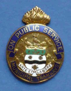 Sometime after the Edwardian era, but prior to the Great War, the uniform jacket was changed to a noticeably smarter design (the Tramways Committee clearly took civic pride very seriously), which although still single-breasted, now had flaps on the breast pockets (with button closures and piping), epaulettes (with button fastenings) and stand-up collars. The main body of the jacket is believed to have been navy blue, with the epaulettes, collars and sleeve chevrons in a contrasting, lighter-blue material (my thanks to Duncan Holden for this information). The collar insignia were now reversed, with the system initials henceforward appearing on the bearer's left-hand collar, though by the mid-1920s, they appear to have fallen out of use.