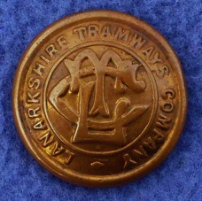 Button description Title (‘LANARKSHIRE TRAMWAYS COMPANY’) within a border, surrounding a monogram of interwoven letters, 'LTC'.