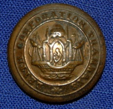 Button description Title (‘LEITH CORPORATION TRAMWAYS’) within a border, surrounding the municipal arms (a sailing ship, with the Virgin Mary holding the infant Jesus, beneath a canopy)