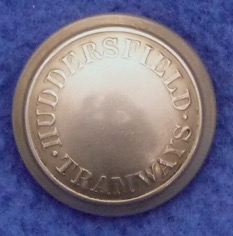 Button description (Pattern 1) Title (‘HUDDERSFIELD TRAMWAYS’) inside a rim, with a plain centre