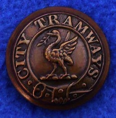 Button description (Pattern 2) Title (‘City Tramways’) in a garter, surrounding Liver Bird